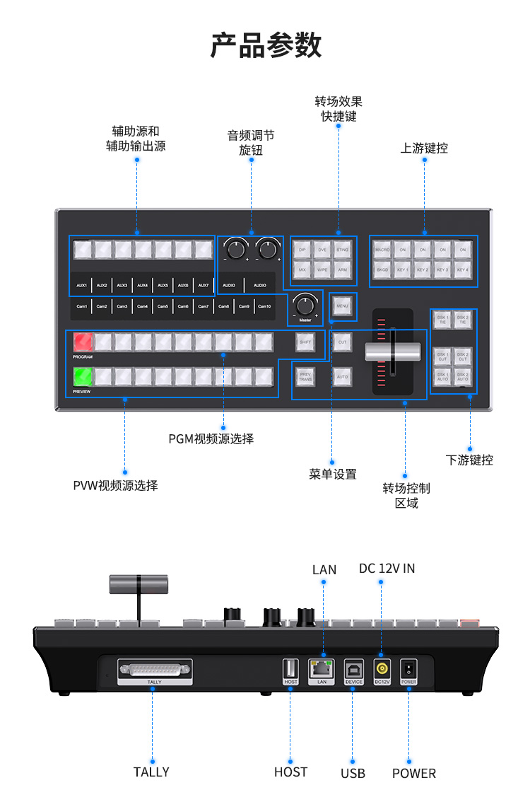 旋鈕 | 三維旋鈕,支持刻度旋轉調節參數 |