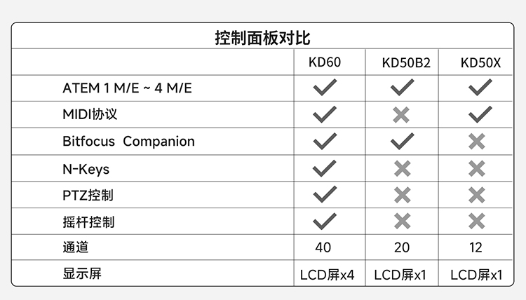 KD60配備高精度4D搖桿,支持VISCA Over IP協議,實現平移、俯仰、變焦、對焦等PTZ操作快速響應,輕松應對多角度拍攝需求,適用于多機位直播、會議及演播室環境。